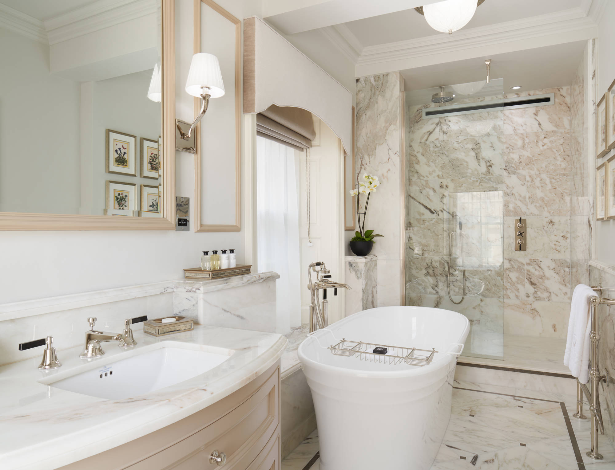 - Marble-clad bathroom with underfloor heating