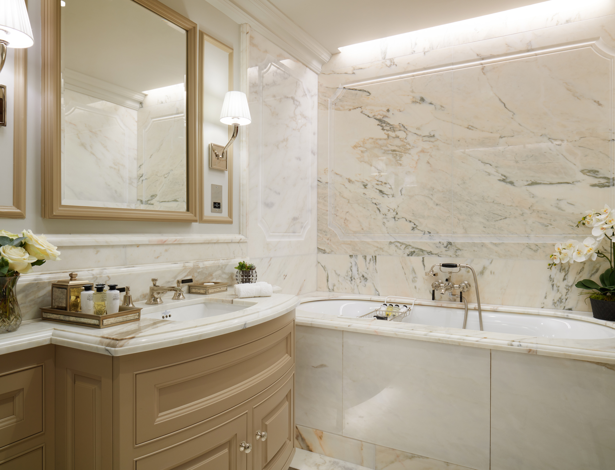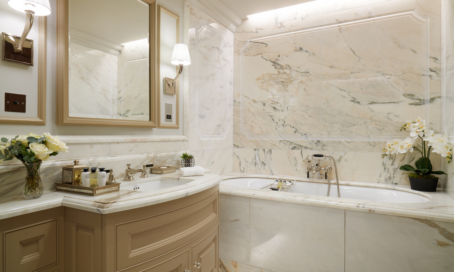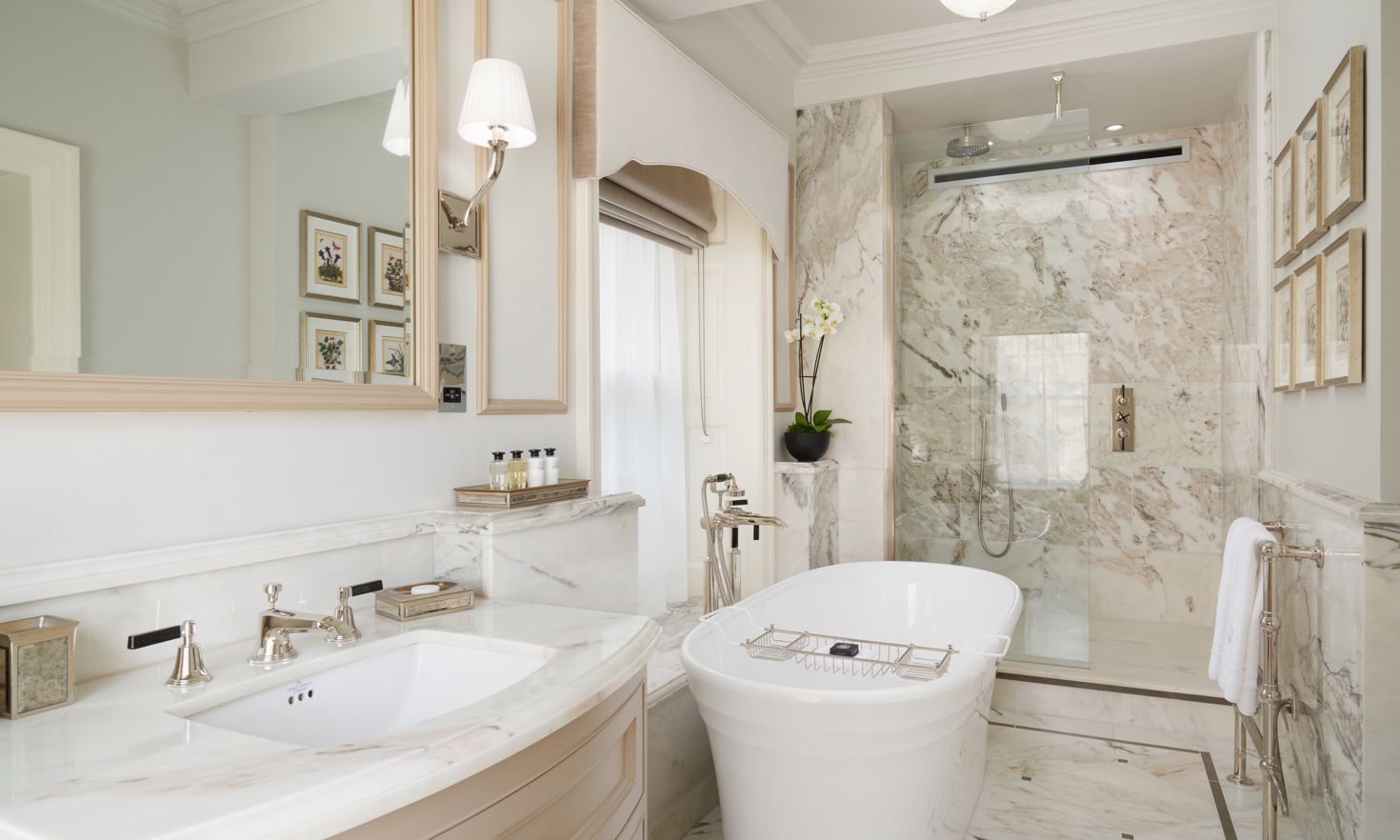 - Marble-clad bathroom with underfloor heating