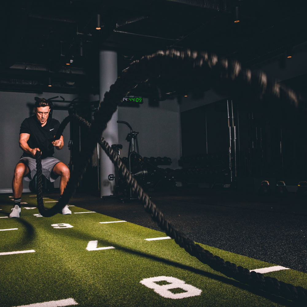 The Strength & Conditioning Studio provides a modern workout space with a pull-up rig, extensive weight section – featuring a power rack – a 10m indoor track with a weighted prowler, TRX, battle ropes and ample functional space.